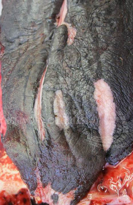- Ston får ödem i och flytningar från vulva, vilket kan leda till vaginalframfall. Ödemet letar sig vidare mellan anus och könsorgan till juver och framåt längs buken. Ibland kan sår i vagina uppträda. Såren kan ge upphov till opigmenterade ärr (se bild), likt de som ses vid godartad beskällarsjuka (infektion med EHV-3). Kastning kan förekomma.